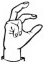 На ћирилици написано УНА КУРМАЗОВИЋ састоји се из 13 слова [?]. Исписано ћириличном једноручном азбуком за глувонеме:
